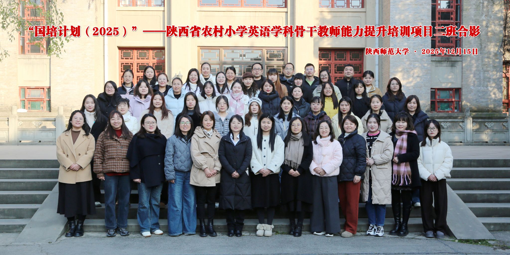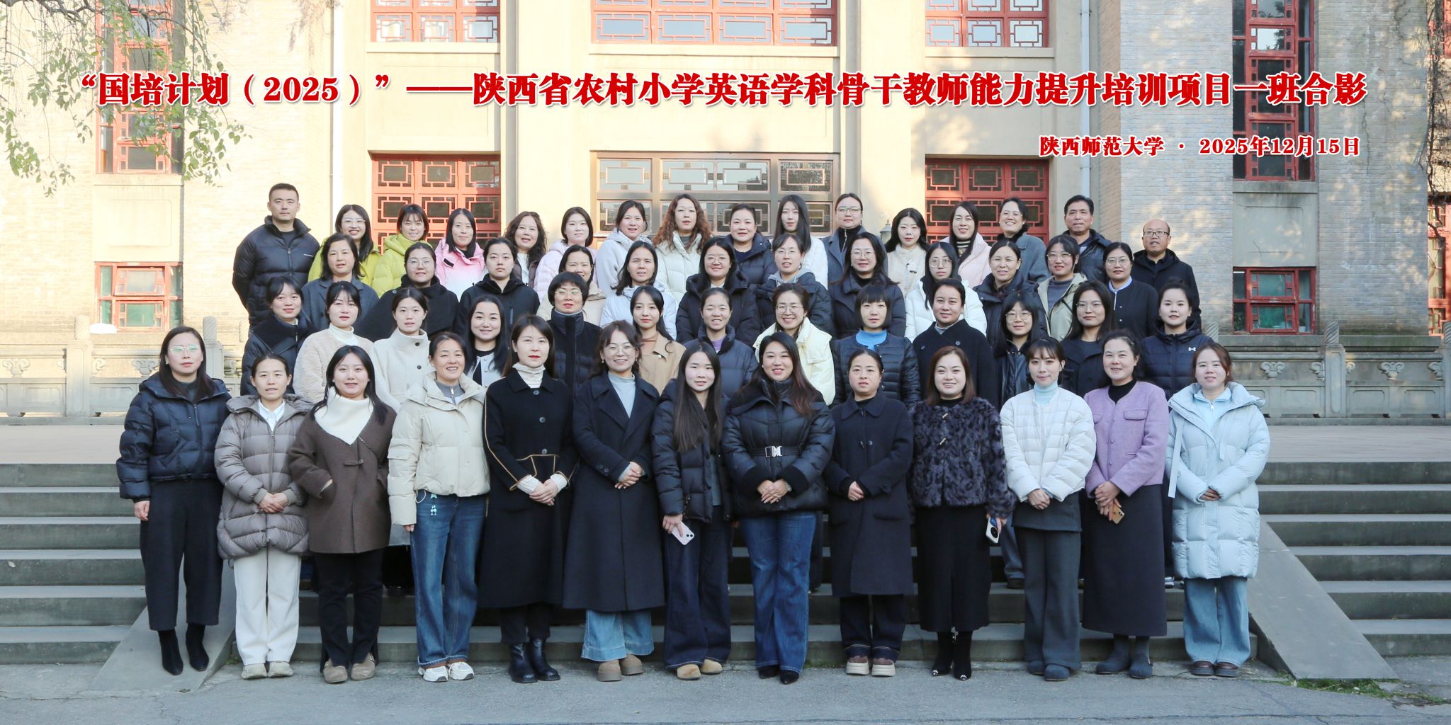 12月12日,“国培计划(2025)”——陕西省农村小学英语学科骨干教师能力提升培训在我校雁塔校区顺利开班。我院研修一部中小学教师研修中心副主任吴瑶和来自陕西省的56位小学英语骨干教师参加了开班仪式。仪式由研修一部项目主管李豫苏主持。
