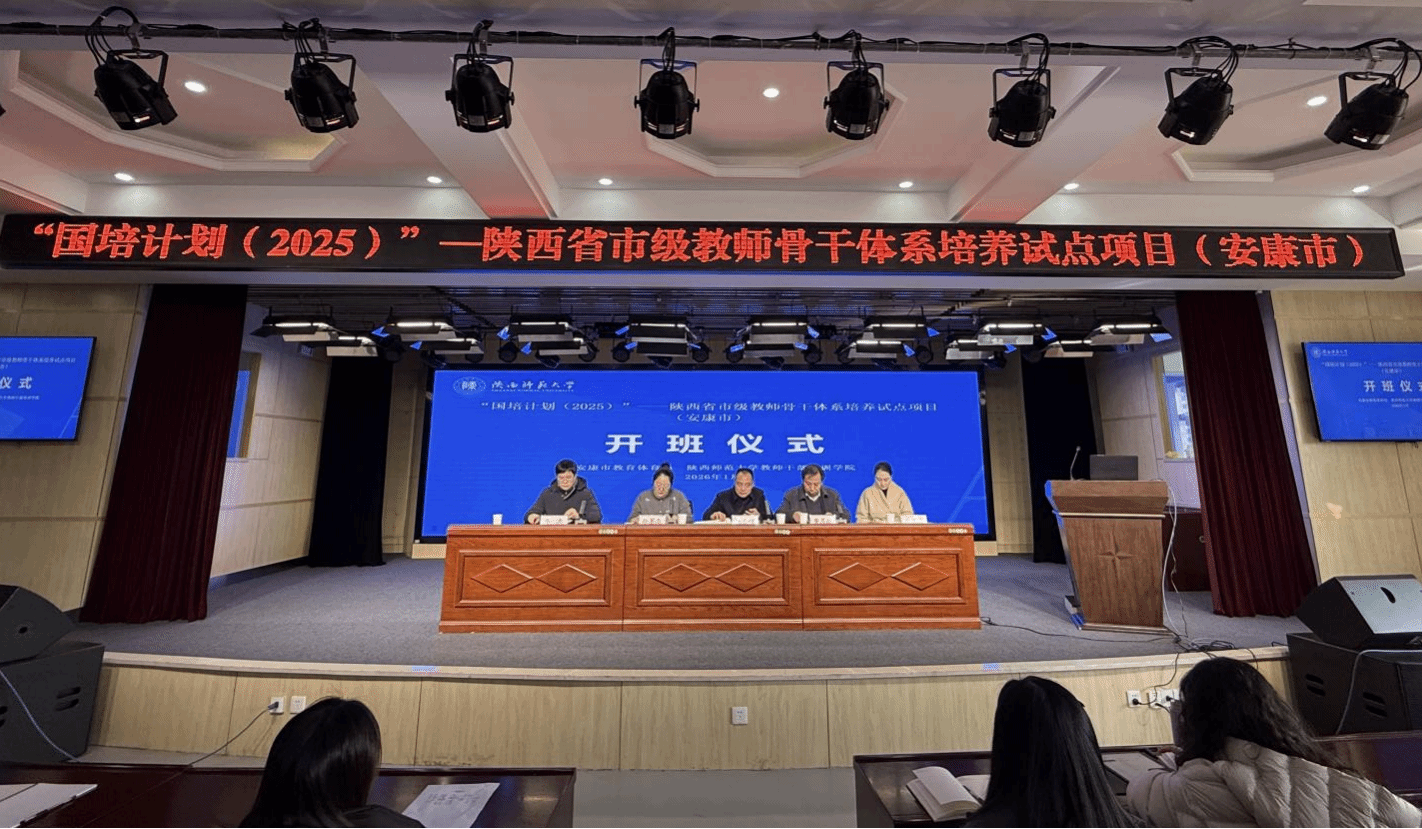 1月9日,“国培计划(2025)”——陕西省市级教师骨干体系培养试点项目(安康市)第一次集中研修在安康市阳光学校顺利开班。安康市教育体育局党委委员、市政府教育总督学杜宗辉、教师工作科科长蔡苏苏、数字教育发展中心主任李志、我院院长董喜林和来自安康市的导师代表、市级名师及学科带头人等200余人参加了开班仪式。仪式由研修一部主任赵菁晶主持。